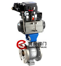 氣動V型調節球閥QV647F/H按密封性能分為硬密封和四氟密封。它采用板簧加載的可動閥座結構,閥座與球體不會產生卡阻或脫離等問題,密封可靠,使用壽命長。V型球閥閥芯設計成帶有特殊開關的V型缺口,流通能力大,壓力損失小,并具有精確的截流特性和控制功能,流量特性為近似等百分比。氣動V型調節球閥啟閉件采用V型球缺結構,又可防止球芯卡死,完全解決了閥腔易沉積介質的問題。